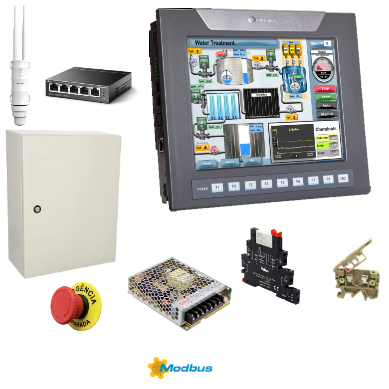 Quadro 800x600 com CLP e IHM 10.4", mais E/S, Antena Wi-fi e baixo custo
